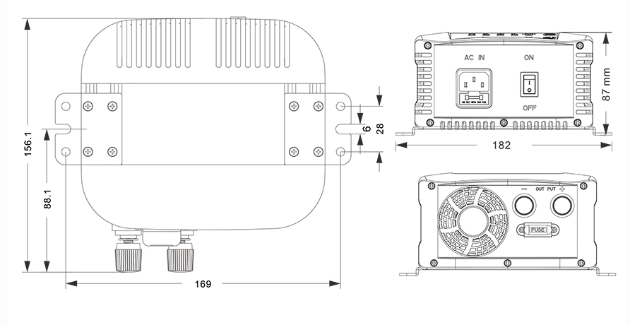 Mga guhit ng mekanikal: (156.1 × 182 × 87mm)