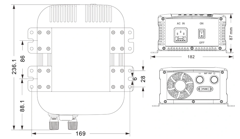 Mga guhit ng mekanikal: (236.1 × 182 × 87mm)