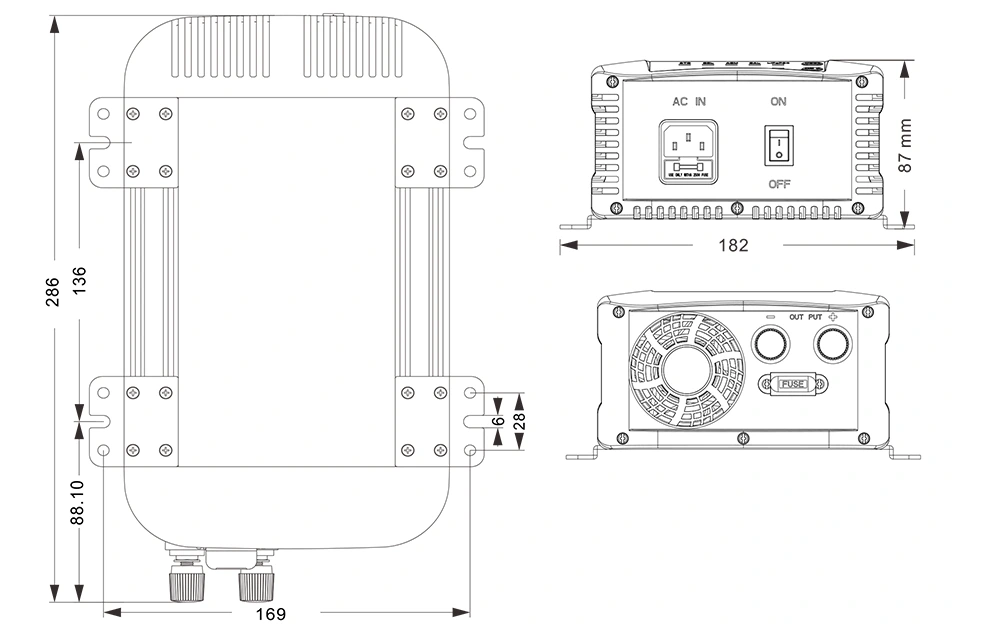 Mga guhit ng mekanikal: (286 × 182 × 87mm)