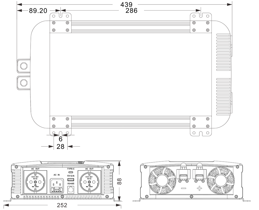 Mga guhit ng mekanikal: (439x252*88mm)