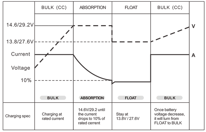 Kontrol ng baterya (3-yugto na mga charger ng baterya) Bulk /pagsipsip /float
