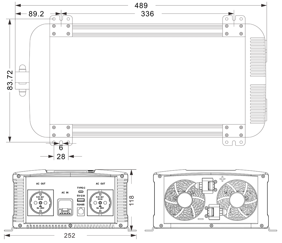 Mga guhit ng mekanikal: (489x252x118mm)