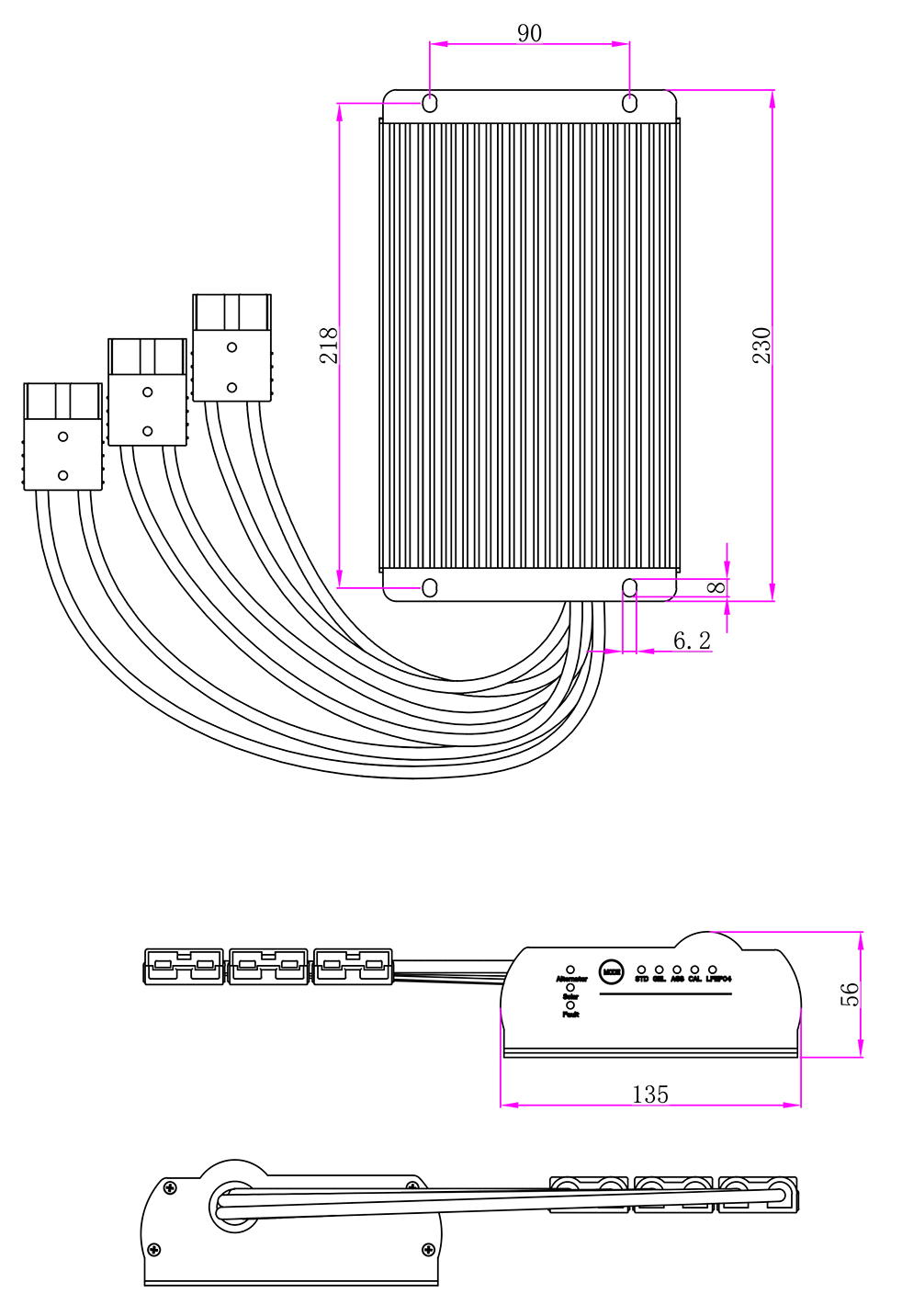 Mga guhit ng mekanikal: (230x135x56mm)